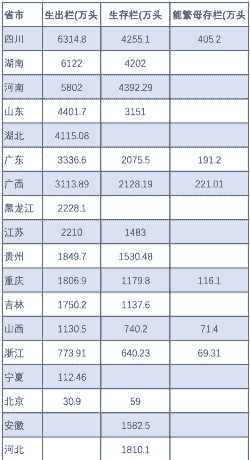 由于数据来源不同,排名可能略有差异,但总体趋势是四川、河南和湖北的出栏量最高。