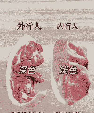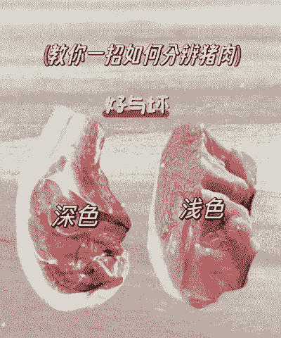 光泽:新鲜猪肉表面有光泽,脂肪洁白或呈淡黄色。不新鲜猪肉表面光泽度差,甚至发暗、发乌。