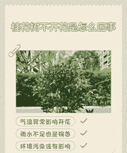 光照不足:长时间将桂花摆放在荫蔽的地方,不利于花芽分化。浇水过多:会产生积水,出现烂根、落叶的现象影响开花。不换盆土:常年不换盆换土,会影响养分吸收。病害侵袭:桂花容易受到炭宜病、介壳虫等病虫害的侵害。