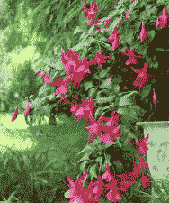 落叶藤本植物,枝条攀爬下垂,花朵密集,花色丰富。常用于园林或商业空间装饰,需搭架支撑。