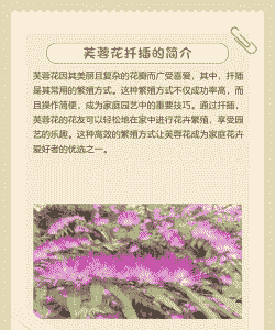 首先,选取健康成熟的木芙蓉枝条,将其剪成15-20厘米长的插穗,将插穗下部斜切,放入生根粉中处理一下,再插入土壤中。保持土壤湿润,适当遮荫,经过一段时间,插穗会生根并长出新的小植株。待新植株长到一定大小后,可以将其分离出来独立栽种。