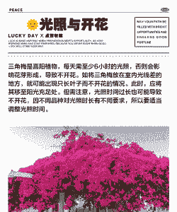 补充肥料:三角梅在开花前一个月,在磷钾元素充足的情况下,等待25天左右植株就会开出鲜艳的花朵,施肥时注意先将肥料稀释再使用。