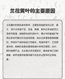 兰花喜肥,但是不耐浓肥,养殖兰花时,如果施肥浓度过大,就会导致植株出现肥害现象而叶片发黄,需要立即向土壤里浇灌一次水分,使其肥含量降低,并且最好每隔1-2月为兰花施加一次稀薄的液肥。