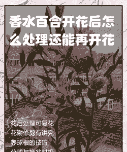 香水百合开花之后,为了使其再次开花,需要及时将开败的残花从基部剪除,以减少养分的消耗,等靠近地面的枝叶枯菱、发黄后,再将其一并剪掉,避免植株感染病虫害,剪后注意在伤口处涂抹草木灰以消毒。2、补充水分