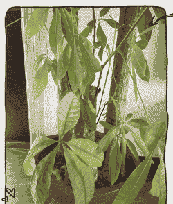 5、注意事项:发财树喜光,不能长时间阴蔽;浇水量不能过多,避免烂根。