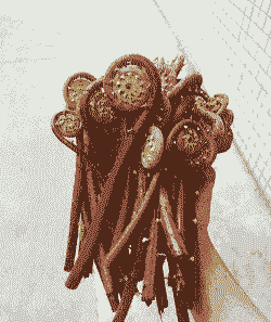 牛毛广(分株紫萁)嫩茎覆盖棕色丝状物,形似牛毛,多见于北方溪流旁,需焯水后食用,可炖肉或凉拌。