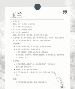 白玉兰的花语是报恩、高洁、纯洁、真挚、表露爱意。寓意着真挚友谊,送给朋友可以表达对友谊长久永恒的祝愿;寓意着纯洁高尚的品行;寓意着安静纯净,在开花时花朵静谧洁白,让人感觉安静美好;寓意着忠贞不渝的爱情。玉兰花代表了纯净的爱情、温馨的亲情、坚贞的友情。玉兰花开放在碧绿的枝叶当中,花朵呈现无瑕的白玉之色,且一旦开放,就会散发出阵阵沁人心脾的香味。