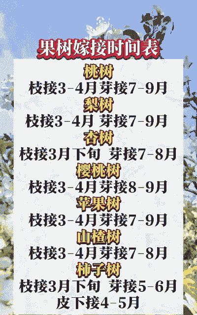 地域差异:北方较南方时间稍晚,需根据当地物候期调整。如需具体树种的嫁接时间或方法,可进一步参考相关来源。