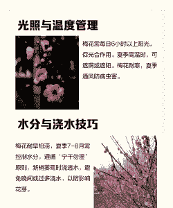 北方防-10℃以下冻害表:梅花盆景四季养护关键任务梅花在不同季节对环境条件有不同需求,特别是花芽分化期和越冬期的管理直接影响来年开花质量。通过科学的四季养护,可以让您的梅花盆景年年花繁叶茂,长久保持观赏价值。
