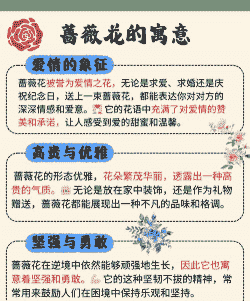 蔷薇花花语是热恋、爱情、爱的思念。寓意着永恒的微笑、华丽的爱情、初恋之情。年轻男女之间互赠蔷薇花,表示对对方的喜欢,在结婚的时候,亲朋好友可以送红色的蔷薇花,表示对新人的祝福,恭祝婚姻美满、幸福吉祥,在表白的时候可以送白蔷薇,代表着初恋。