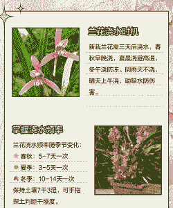 给兰花进行浇水的时候,春、夏、秋三季建议在每天的傍晚进行浇水。而在冬季需要在每天正午温度有所回升的时候进行浇水为宜。