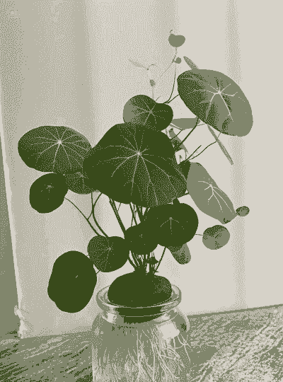 无根块茎水培约30天可生根,期间避免频繁移动。若茎叶过密,可适当修剪以保持形态。