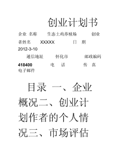 养殖创业计划书是一个详细阐述养殖项目计划、市场分析、养殖技术、团队组建、资金预算等关键要素的文档。以下是一个养殖创业计划书的基本框架和要点,供您参考: