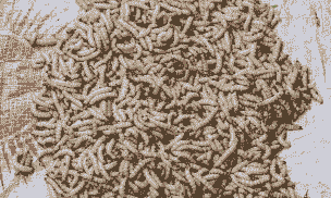 将鸡粪30%,小麦鼓70%或全部鸡粪、猪粪混合后加水配制成含水量在60%左右的培养基。将配好的培养基盛于蝇蛆培养盘中,厚度约为3-5厘米,然后按每5千克培养基接种蝇卵4克的比例接种。接种好的培养基便可放到22-25℃的培养室内培养。蝇卵在培养室内经过8~12小时就能孵化成蛆,经5-6天就可成蛹。作为畜禽的饲料,一般从幼虫孵化的第4天即可作为产品收获。
