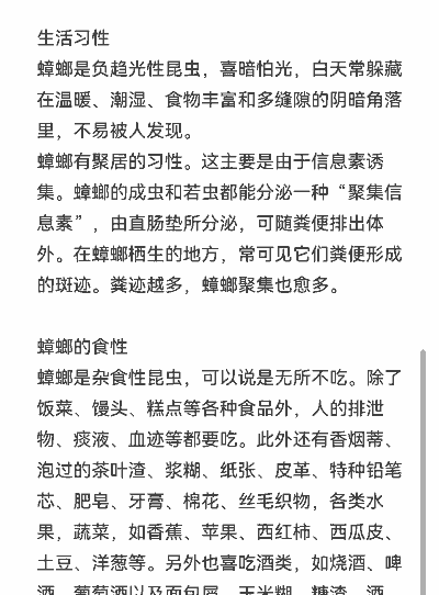 食物:蟑螂食性广泛,可以喂剩饭剩菜、果皮、蔬菜水果等。