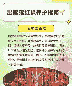以上是养殖枫叶的基本要点,具体养护时还需根据枫叶的生长习性和当地气候条件进行适当调整。