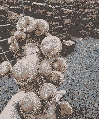 当香菇盖伞完全展开后,可以用刀片切下,并尽快收获,以免过度生长造成失味。