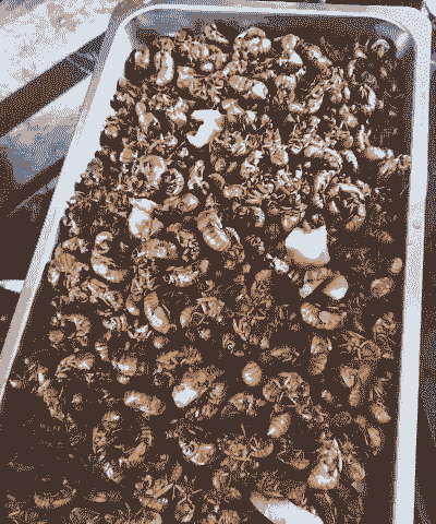 从6月底到7月底是“爬拉猴”破土最集中的时候,一般从晚上8点左右开始,一直到晚上10点,是破壳羽化成虫的时候。