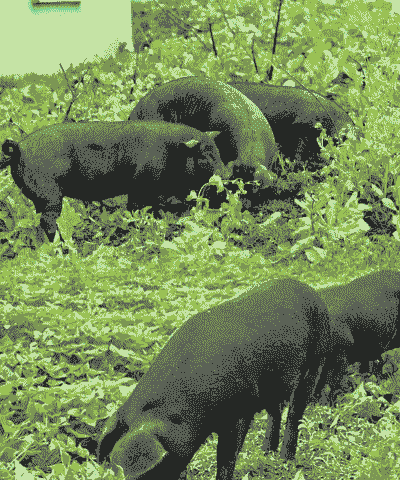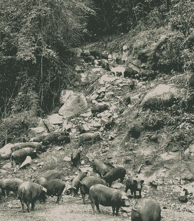 小猪需喂食精细的玉米粉加精饲料,生长育肥期需大量饮食。