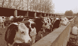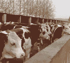 育肥期:每天每头牛需草8--12市斤,精细料5--8斤,后期追肥每天需草12--15斤,精细料8--10斤,青草加量30%,催肥期每投给2千克混合料,再添加50克尿素,可增重1千克多,精粗比为7∶3,日增重达到1.5千克左右,混合精料配方为玉米粉85%、豆粕为10%、麸皮为10.5%、添加剂50克,后期肉牛采食量约为体重的2.5%~3%,一般在出圈前的10天,为加速育肥要求精料的日采食量应达到4~5千克,粗饲料应自由采食,以助消化和提高牛的食欲。