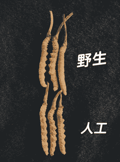 人工养殖的虫草消化腺明显,多为黑色。