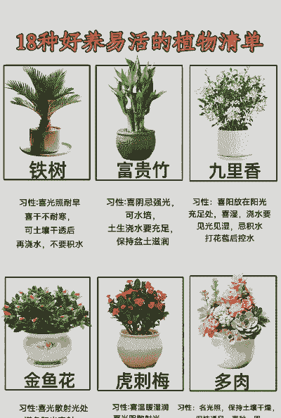 根据光照条件选择:如果室内光线充足,可以选择喜阳的花卉,如月季、茉莉、米兰等;如果光线不足,则选择耐阴植物,如吊兰、绿萝、万年青、龟背竹等。