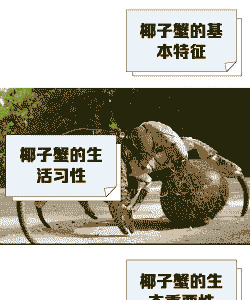椰子蟹是爬行动物,需要足够的空间攀爬,因此饲养缸应足够大,并有攀爬物如椰子树等。