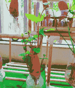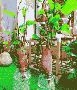 将红薯切成块状的种薯,放置在温暖的室内,等待萌芽。通常需要3-4周时间。