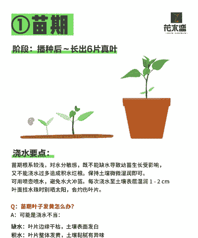 播种前先对种子进行处理,先将种子放在阳光下暴晒两天,这样不仅可提高发芽率,还可杀死种子携带的病菌。或者用稀释的高锰酸钾浸泡杀菌,再用温水浸泡12小时左右。将种子均匀撒在苗床上,覆土1cm左右,喷洒水使土壤湿润,保持温度在25-28度之间,约一星期即可发芽出苗。当幼苗长至5cm时就可对其定植。