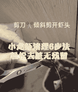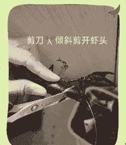 去除虾头内的黑黑东西: