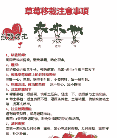 移栽后,要避免草莓生长空间过于拥挤,保持适当的散射光线,并逐渐提高养护环境的光照。同时,要注意保持土壤湿润,及时浇水和施肥。