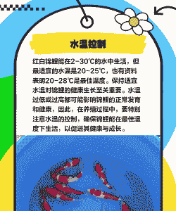 锦鲤适宜的水温范围为20-30摄氏度。在养殖过程中,需要密切关注水温变化,避免水温过高或过低对锦鲤造成不良影响。