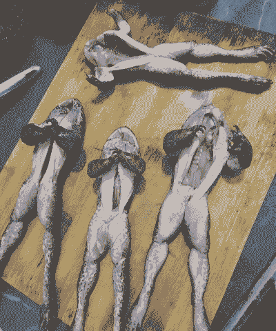 石蛙去皮去内脏,斩去脚爪后剁成大块。