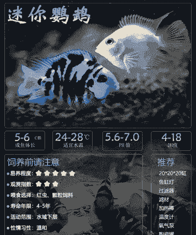 pH值:迷你鹦鹉鱼喜欢弱酸性的水,pH值应控制在6.0-7.0之间。