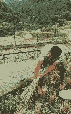 3. 草捞出后仍堆放成小堆,以便继续诱泥鳅进草堆然后捕捞。
