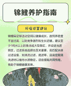 过滤系统:过滤系统必须良好,以保证水质的清澈和稳定,这对锦鲤的健康至关重要。