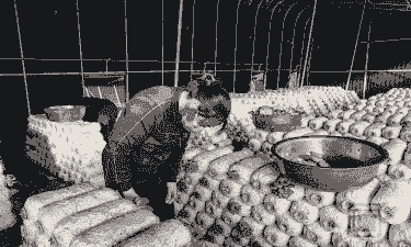 消毒灭菌:将原料装入饲料袋,压实、压紧做成代料简子,然后用高温蒸汽进行消毒杀菌,一般需要10小时以上。