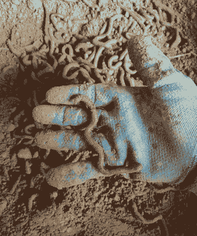 收取成蚓的方法:主要采用光照下驱法,通过蚯蚓的避光特性,在阳光或灯光的照耀下,用刮板逐层刮料,驱使蚯蚓钻到养殖床下部,最后蚯蚓成团,即可收取。