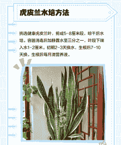 虎皮兰的繁殖可用分株和扦插的方法。分株适合所有品种的虎尾兰,一般结合春季换盆进行。扦插仅适合叶片没有金黄色镶边或银脉的品种,方法是选取健壮而充实的叶片,剪成5~6厘米长,插于沙土或蛭石中,露出土面一半,保持稍有潮气,一个月左右可生根。