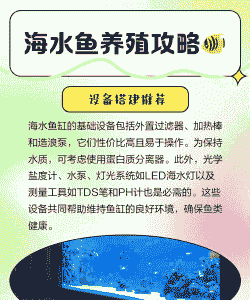 水族馆的海鱼养殖需要考虑多个方面,包括生活环境的准备、海水的配制、饲料的选择和投喂、以及日常的维护和管理。以下是一些详细的步骤和建议: