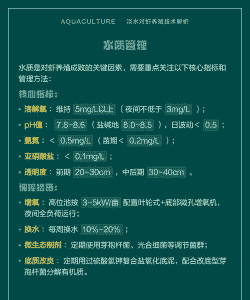 水体应保持高溶氧,溶解氧应在50毫克以上,透明度30~40厘米,pH值7.0~8.5。