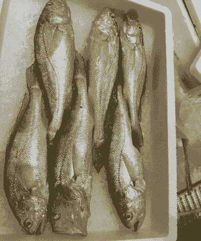 黄鱼反应灵敏,竿尖微微颤动即可提竿上鱼。