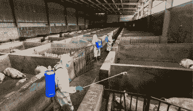 对猪舍、设备、运输工具及周围环境进行全面彻底的消毒。