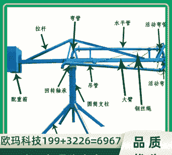 在操作时,一人拉住手动管前端的绳子,转动主梁架和前端手动管以获得不同平面内的布料。