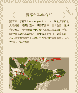 蟹爪兰喜半阴半阳散射光,忌烈日直晒。养护时要注意遮阳和保持通风良好,避免长时间处于高温和潮湿环境中。