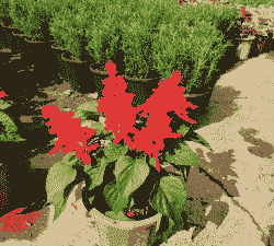 盆栽一串红在移栽成活后需要打顶3次,抑制其生长,促进侧芽萌发,使植株矮壮,花头较多。