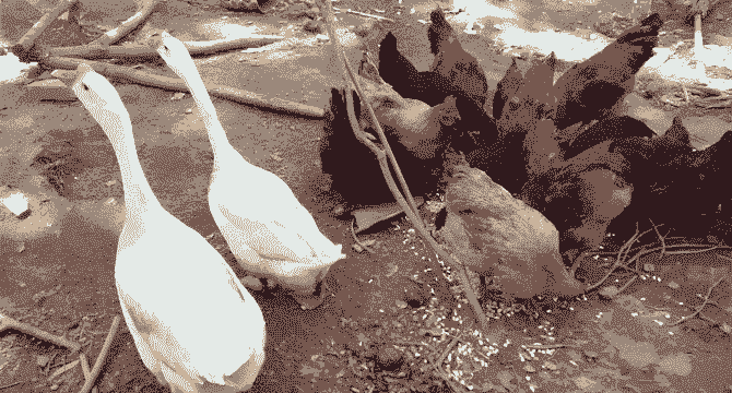 土鸡散养期间,鹅可以对付黄鼠狼等动物,减少土鸡的死亡率。