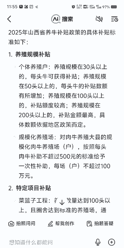 养牛补贴