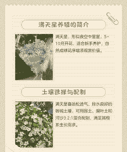 满天星喜水,但不耐水涝。浇水要遵循见干见湿的原则,避免过度浇水导致根部腐烂。在生长季节内,每周浇水一次即可,注意观察土壤的干湿程度,避免土壤过于干燥或过于潮湿。