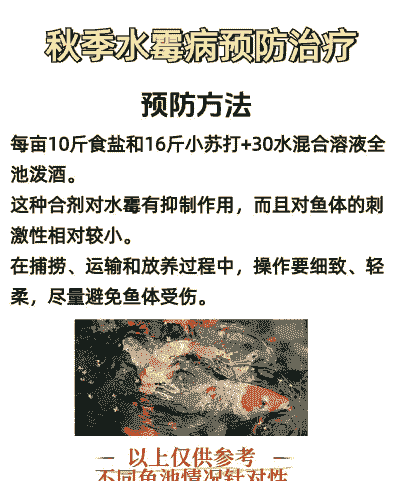 在拉网捕鱼时避免鱼体受伤,伤口是感染水霉的主要条件。